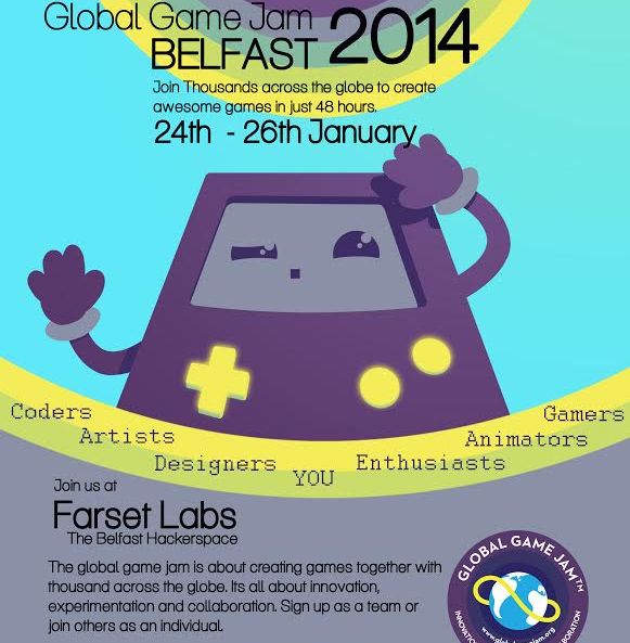 Entry to the event is free, though it is asked that you register on the Global Game Jam site if you are participating. We also have an Eventbrite listing for the event to allow people to register and give us an idea of numbers. The theme will be announced at 5pm on the Friday so we recommend all participants to be in Farset before that time. Looking forward to seeing you all for this, it should be a great weekend!