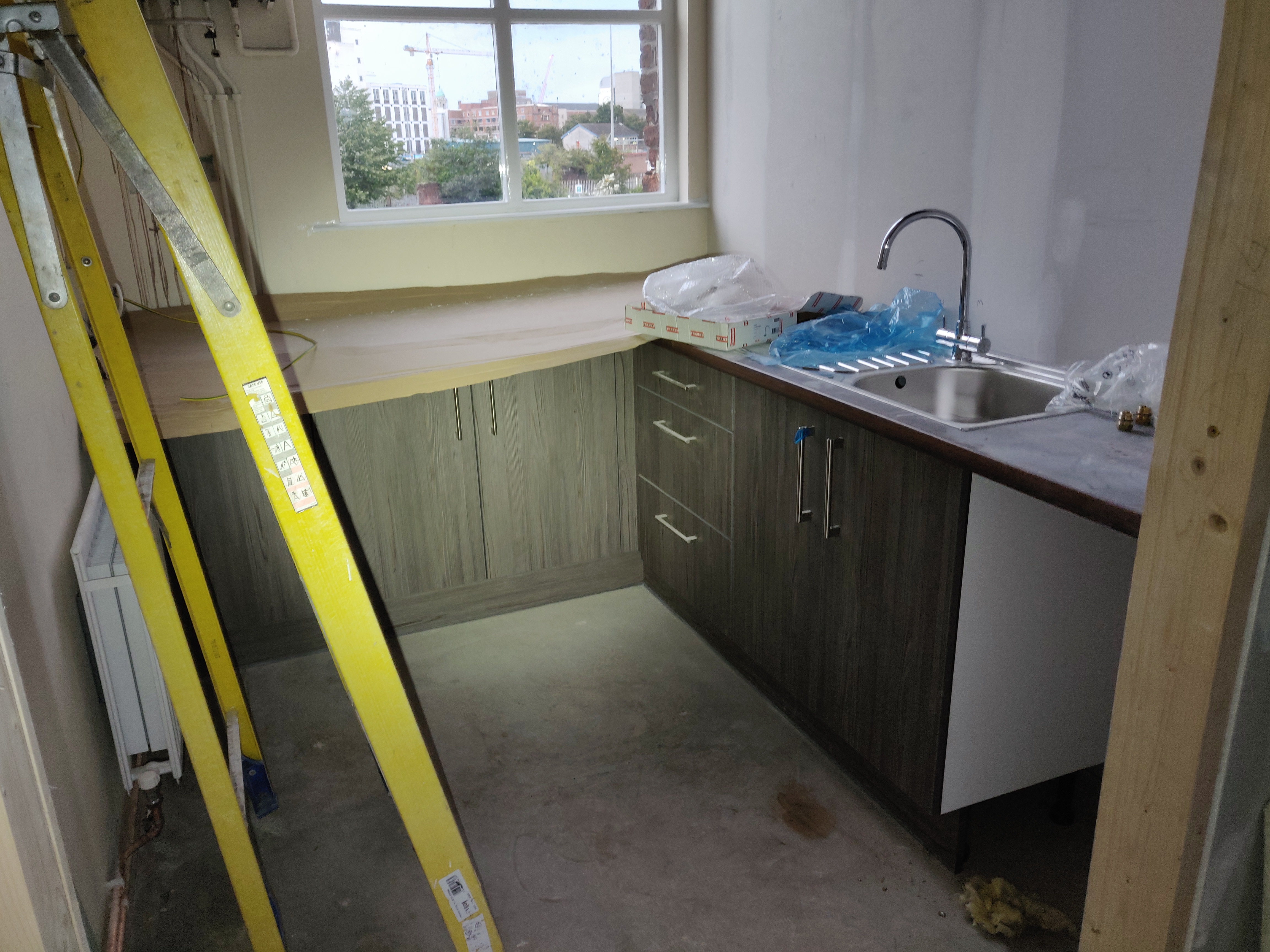 At the other end of the building, I returned from a trip away to a conference to find that the upstairs kitchenette and lift had seemingly appeared out of nowhere – appearances were deceiving, though, since most of the internals of the lift were still being worked on. Accessibility has been a very important consideration during this renovation, and a number of features have gone or are going into the building in order to help our users.